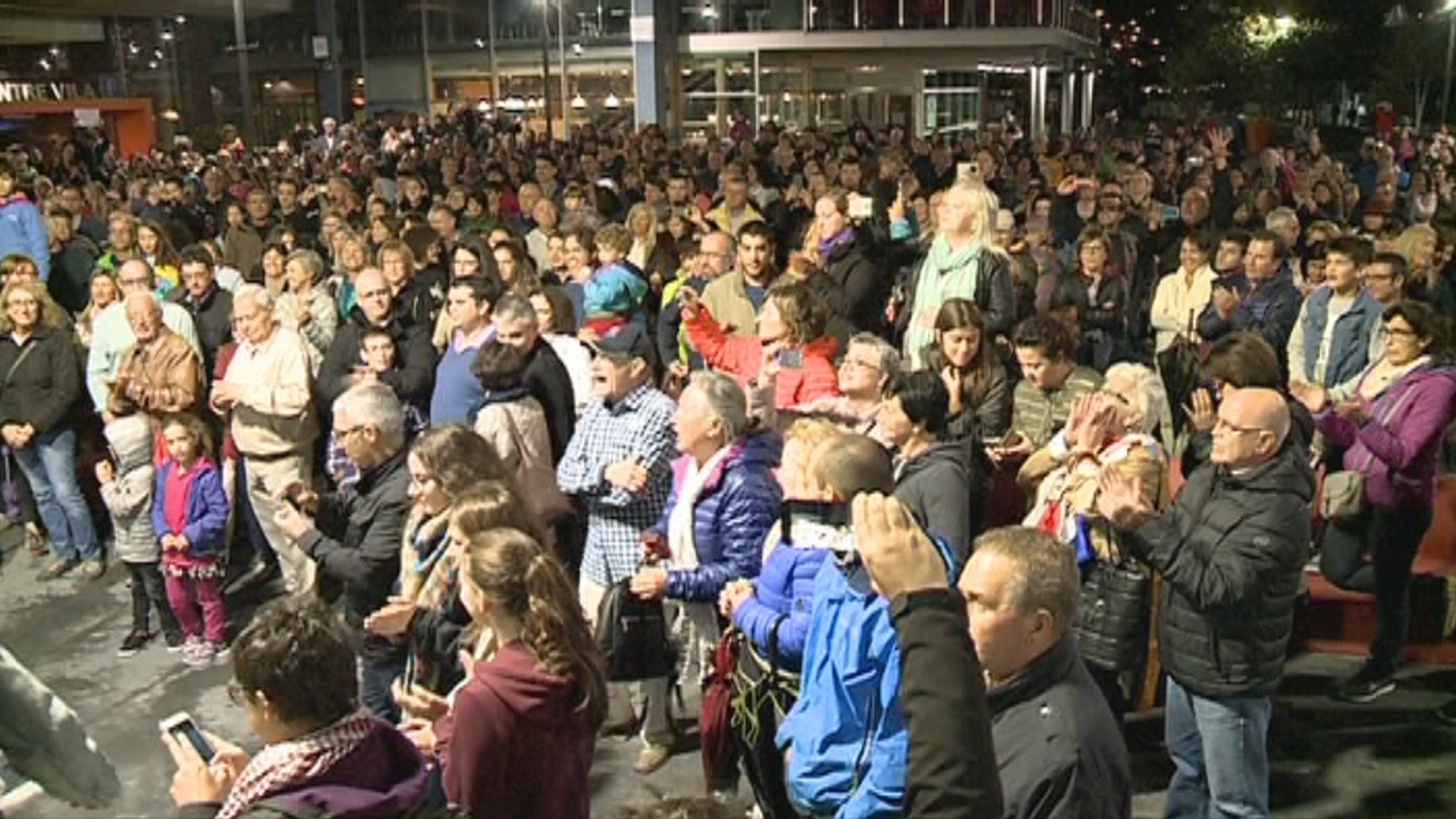 Més de 500 persones s'han concentrat a la plaça del Poble per condemnar la vulneració de drets i els actes de violència que s'han viscut a diferents indrets de Catalunya durant la jornada del referèndum.