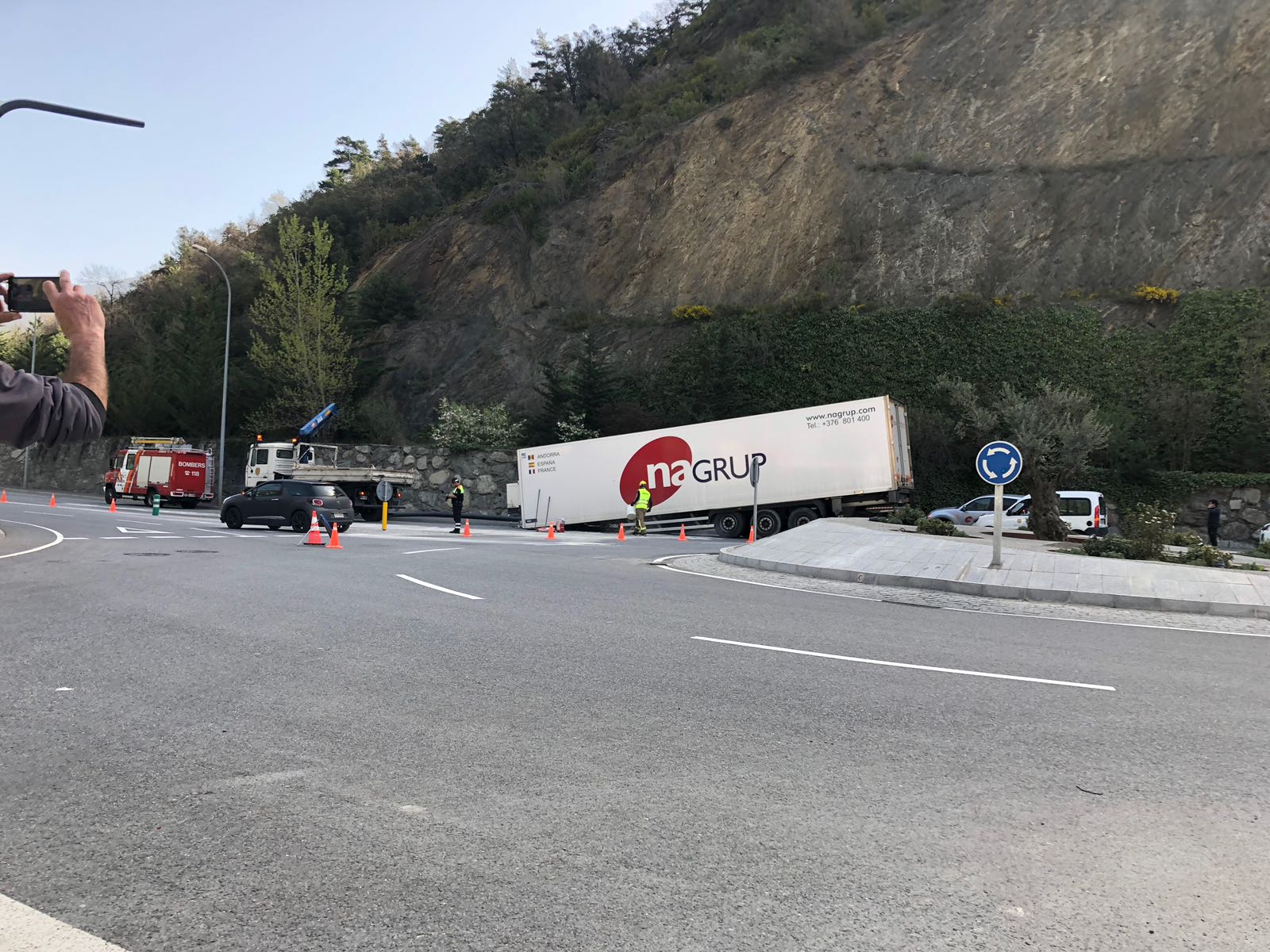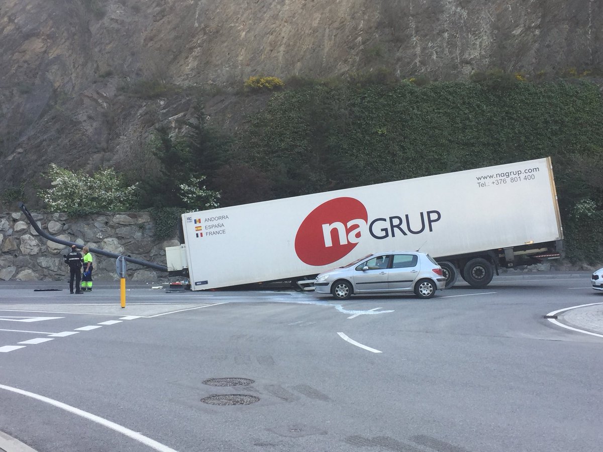 Un camió ha col·lidit aquest dimarts al matí contra un fanal a l´alçada de la rotonda de la depuradora de Sant Julià de Lòria.